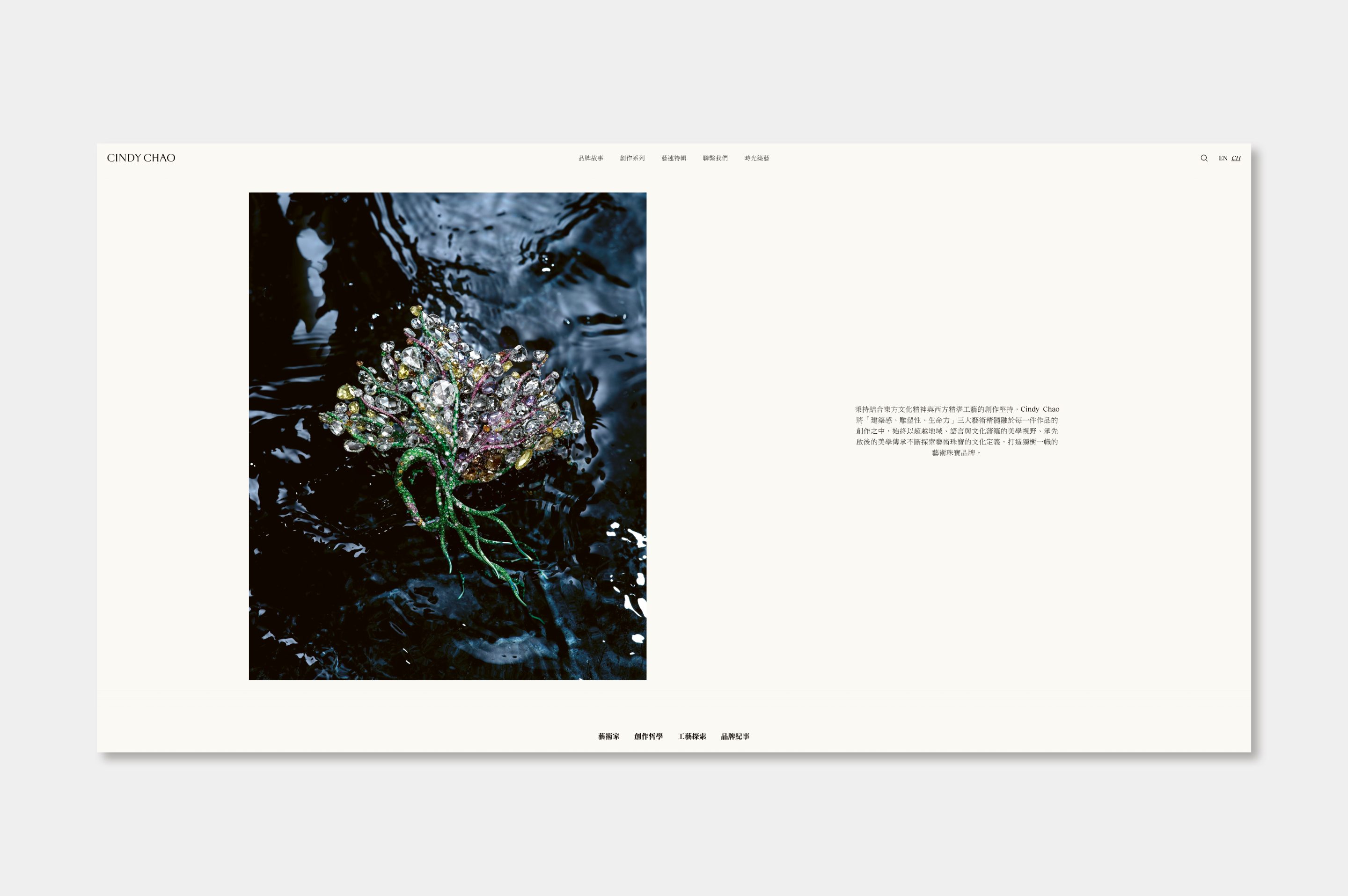 SHOW started working with luxury Taiwanese jewellery designer Cindy Chao in 2024, redesigning and building its website in English and Chinese. The new website incorporates a contemporary and dynamic feel, focusing on responsive design that incorporates movement. The design takes inspiration from the sculptural and architectural nature of Cindy Chao’s jewellery, with the intricate details of the jewellery pieces placed front and centre.